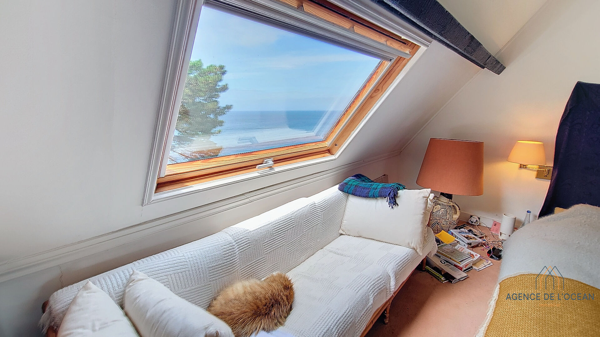 La maison comprend, au rez de chaussée, une entrée, un séjour-salle à manger avec vue sur la mer, une cuisine indépendante, une chambre avec vue sur la mer, un bureau avec vue sur mer, une salle d'eau et un WC. A l'étage, un large palier dessert quatre chambres, toutes avec une vue sur la mer, une salle d'eau et un WC indépendant. Une dernière chambre avec sa salle de bains est accessible depuis le salon.