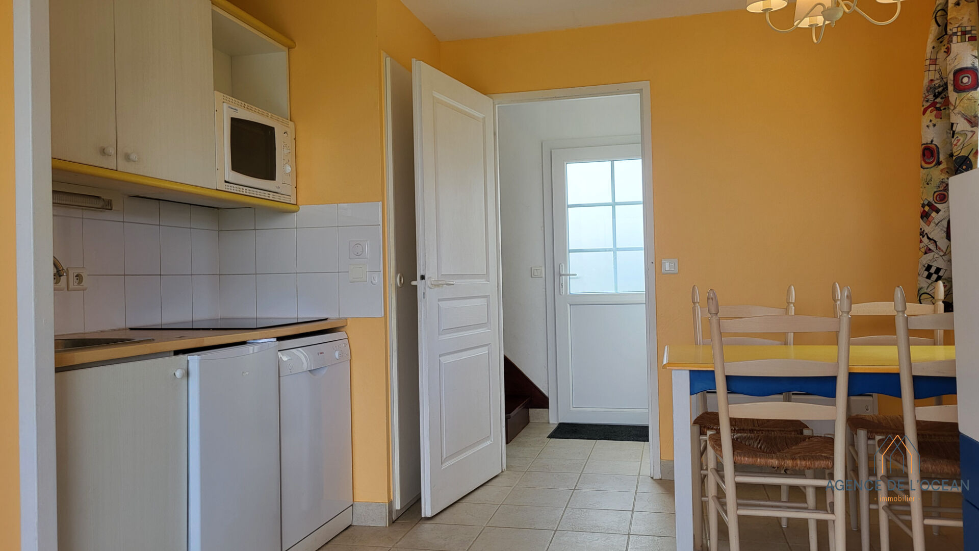 Sur la commune de Locmaria, dans une résidence avec piscine chauffée, située à 200 mètres de la plage de Port Maria et à proximité immédiate des commerces, cette petite maison mitoyenne d'un coté, comprend au rez-de-chaussée une entrée, un WC, une pièce de vie avec cuisine donnant sur une terrasse avec une très belle vue mer. A l'étage : un palier avec rangement, une salle d'eau et une chambre avec un accès extérieur. Sous l'escalier, une remise de 3m² (5.17 % honoraires TTC à la charge de l'acquéreur.)