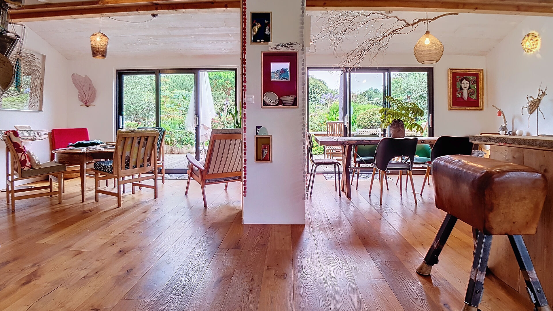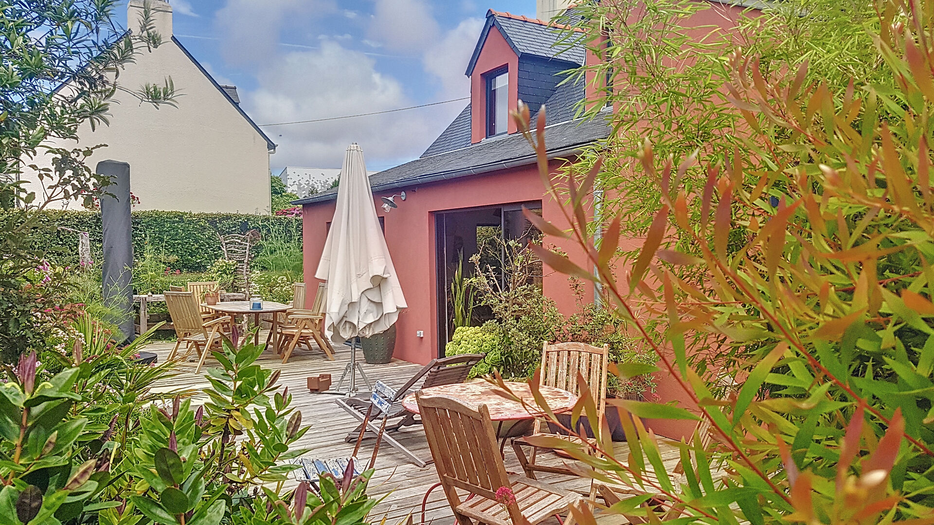 Nichée dans un écrin de verdure, à quelques pas du coeur de Palais et de la plage de Port Guen, cette maison d'artistes allie charme, luminosité et écologie. Construite en ossature bois, elle bénéficie d'une excellente performance énergétique (classe B) tout en offrant un cadre de vie naturel et chaleureux.