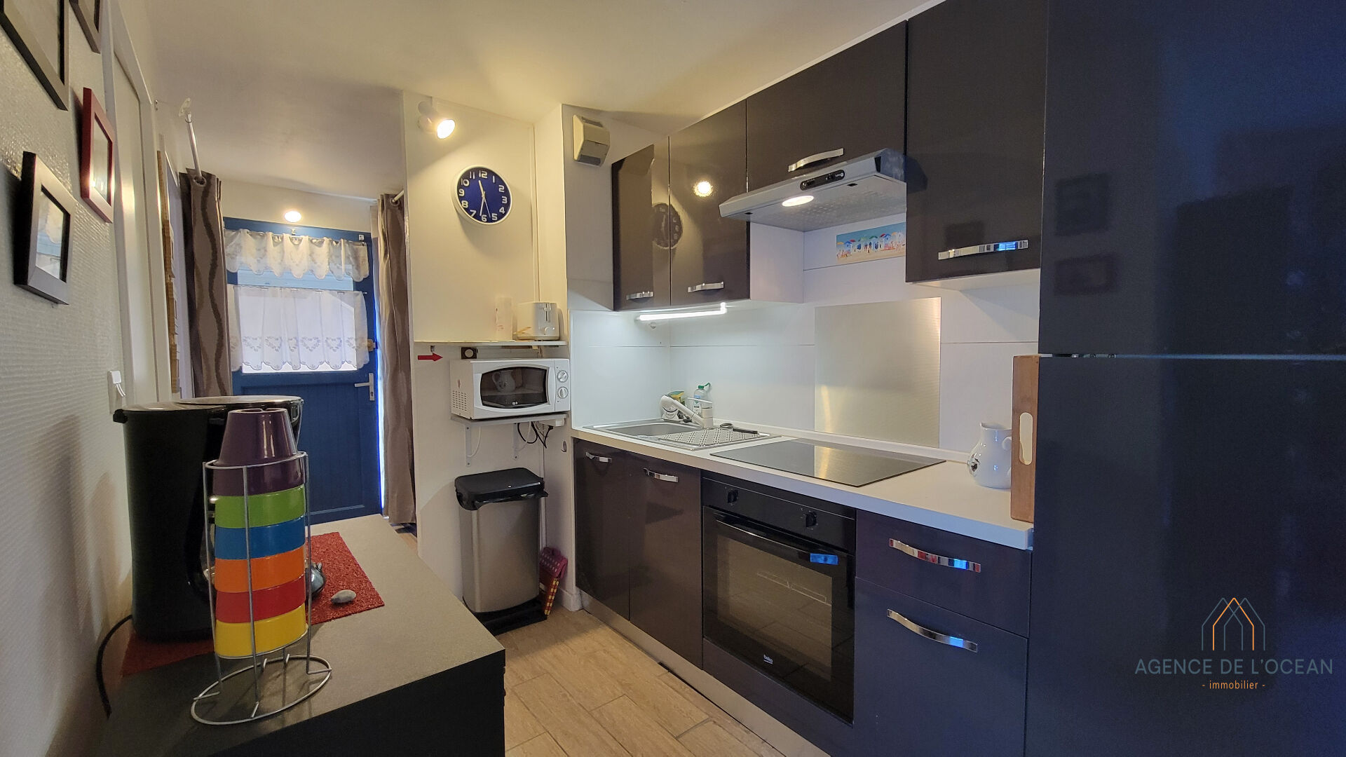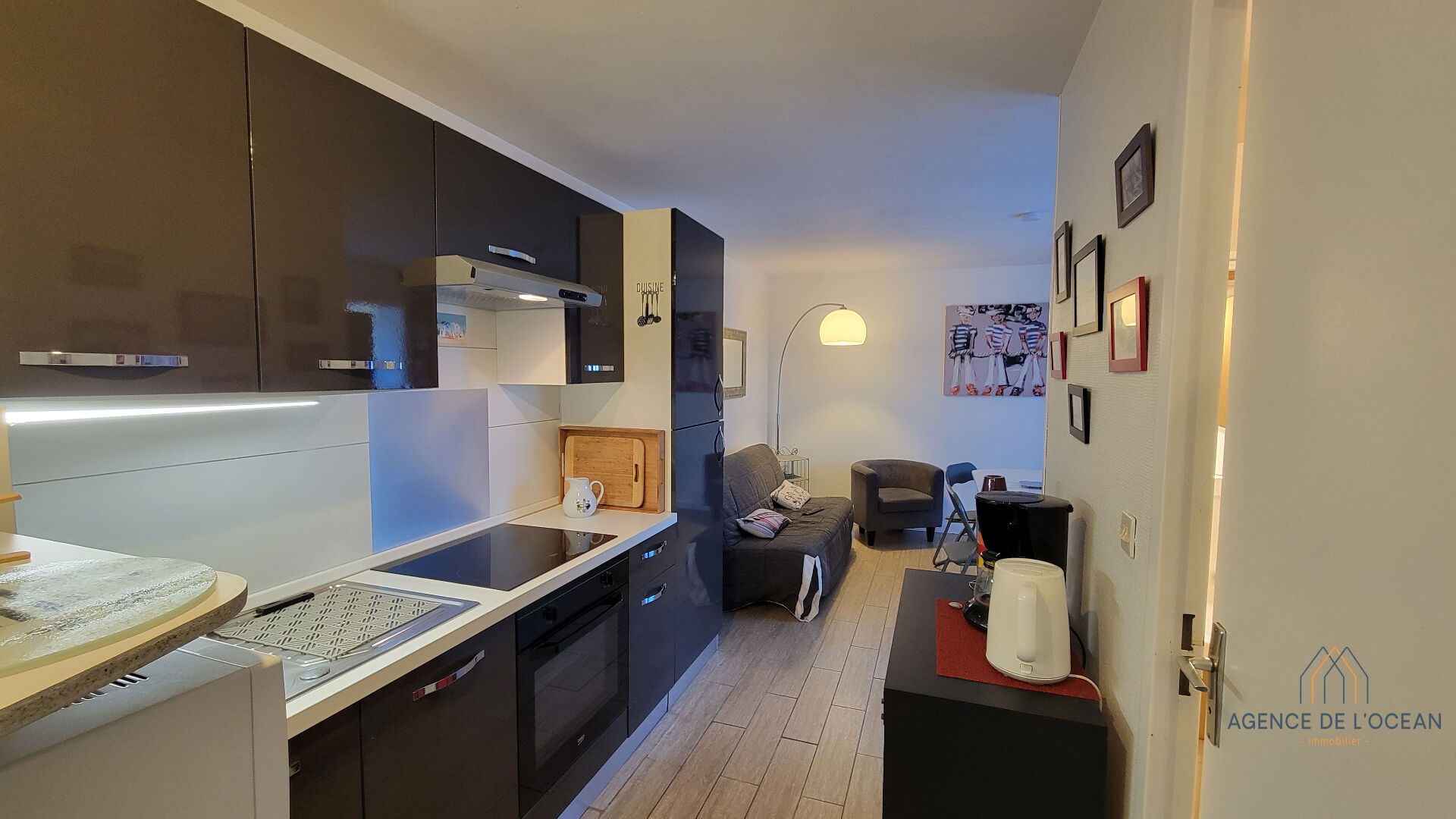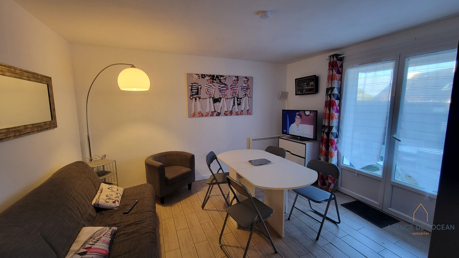 L'appartement de plain pied comprend une entrée, une cuisine aménagée et équipée donnant sur le séjour, une petite chambre et une salle d'eau avec WC. Un alcôve permet d'envisager un couchage supplémentaire ou peut être aménagée en grand placard.